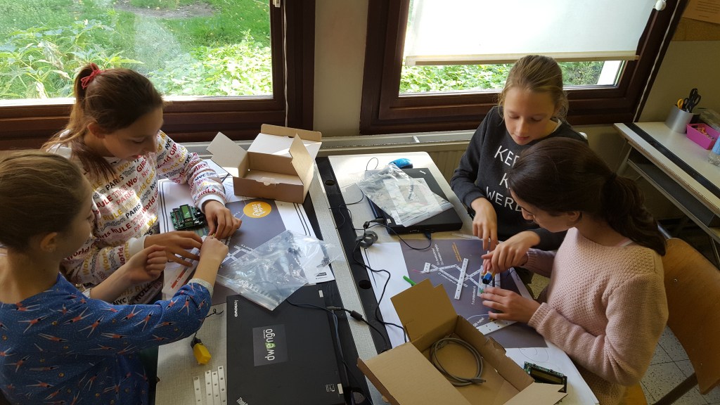The students just get a picture of the finished robot, and have to figure out themselves how they have to build it. But you’d be surprised to see how fast they can build it.