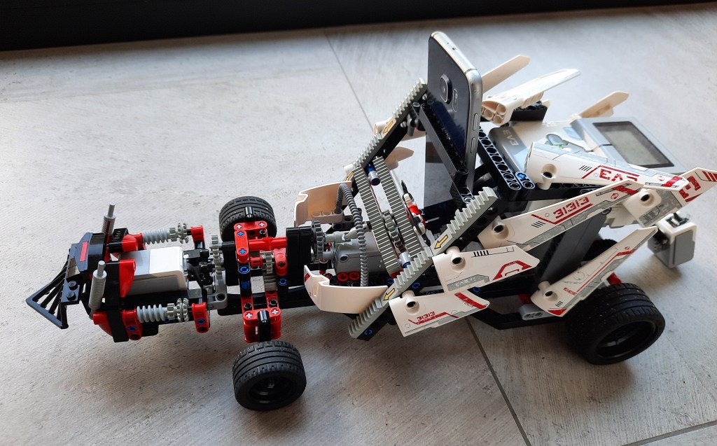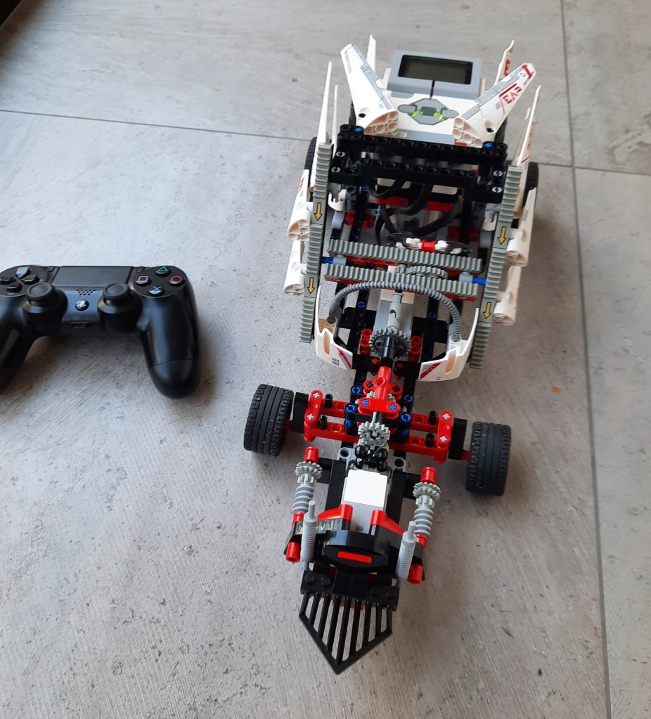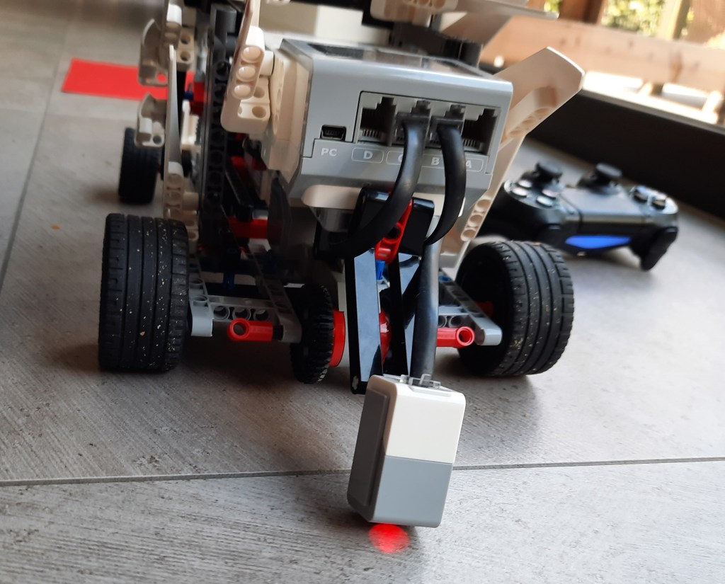 I’ve used MicroPython for programming the EV3. Programming was a bit harder than normal, because I had to support 3 events simultaneously: controller inputs, collision detection and lap detection.