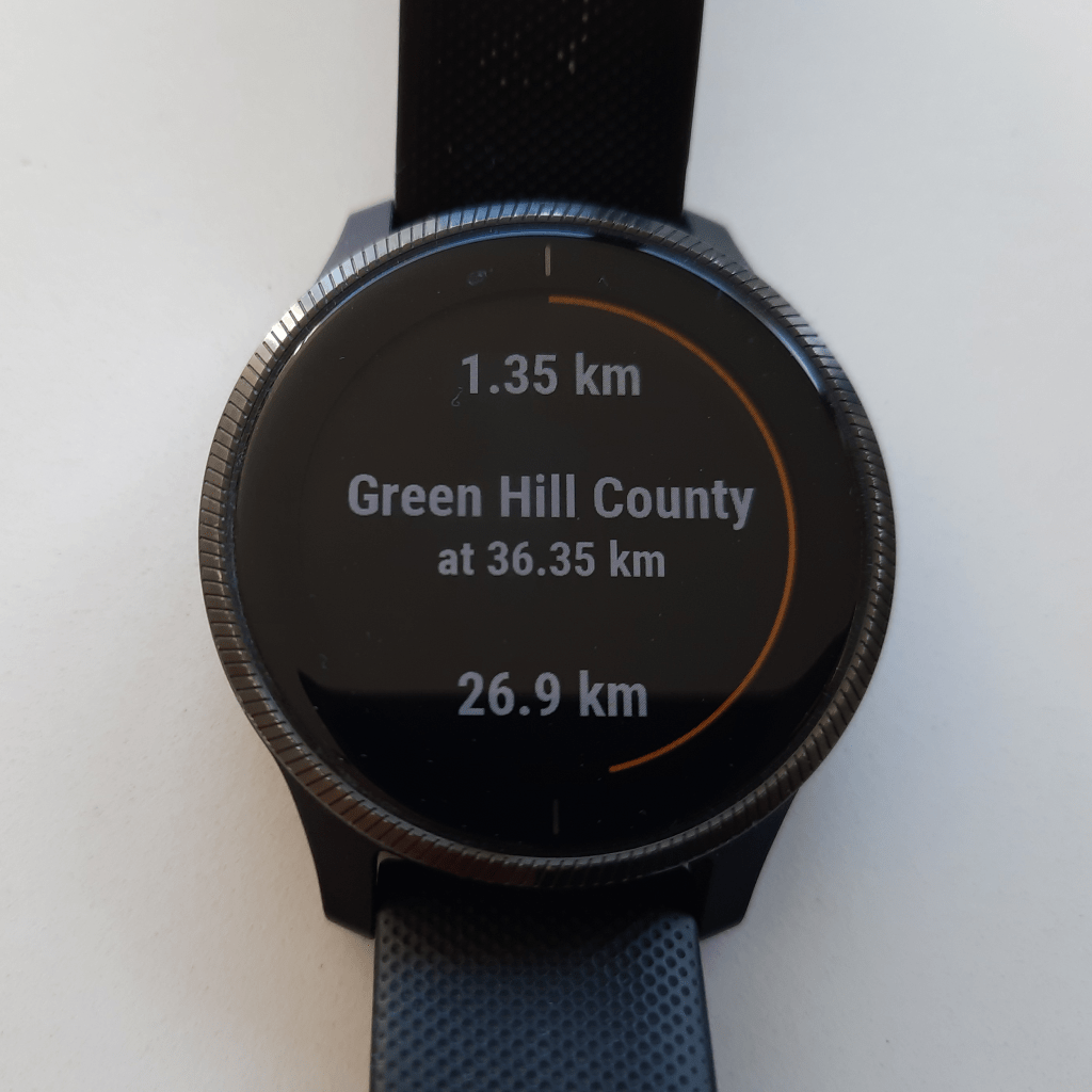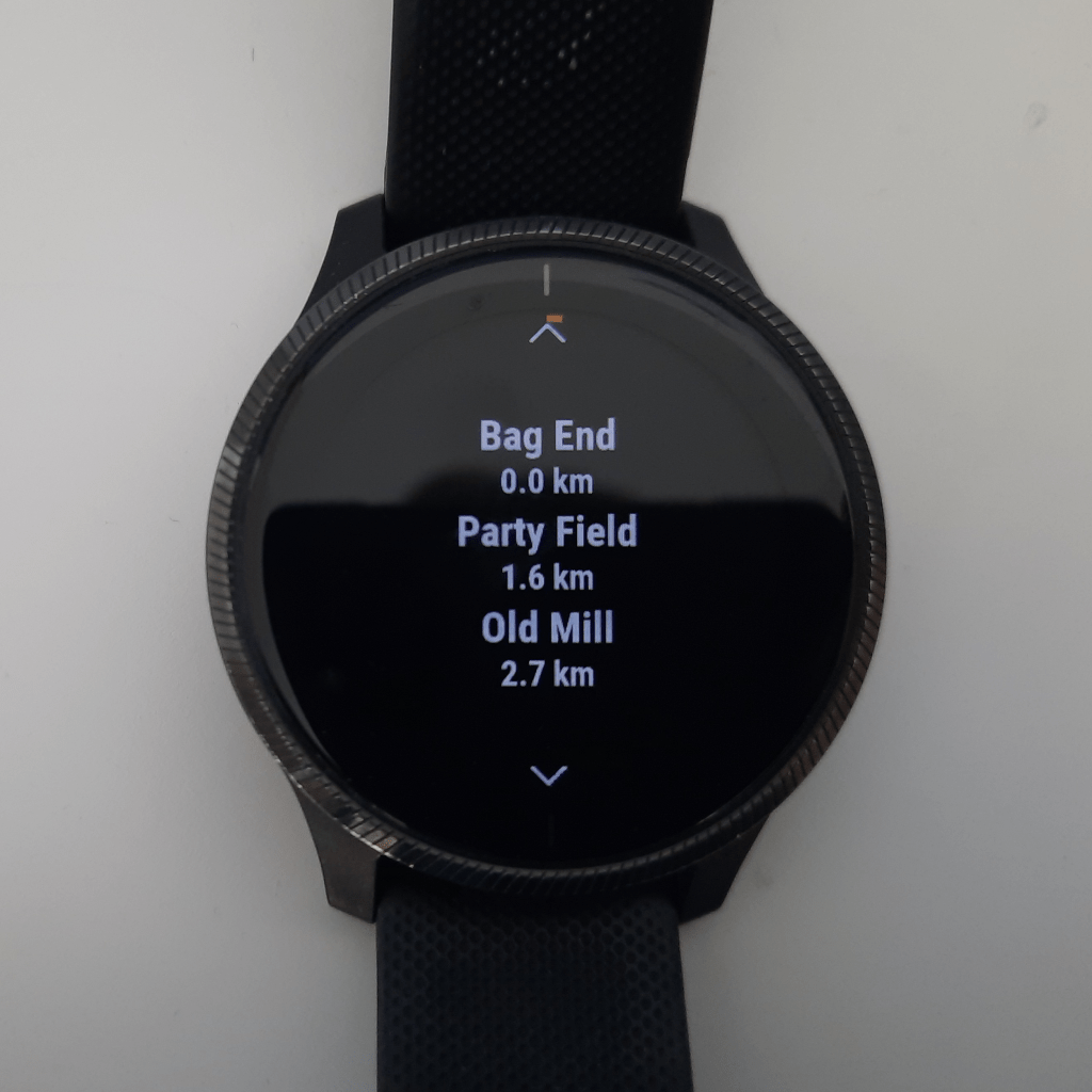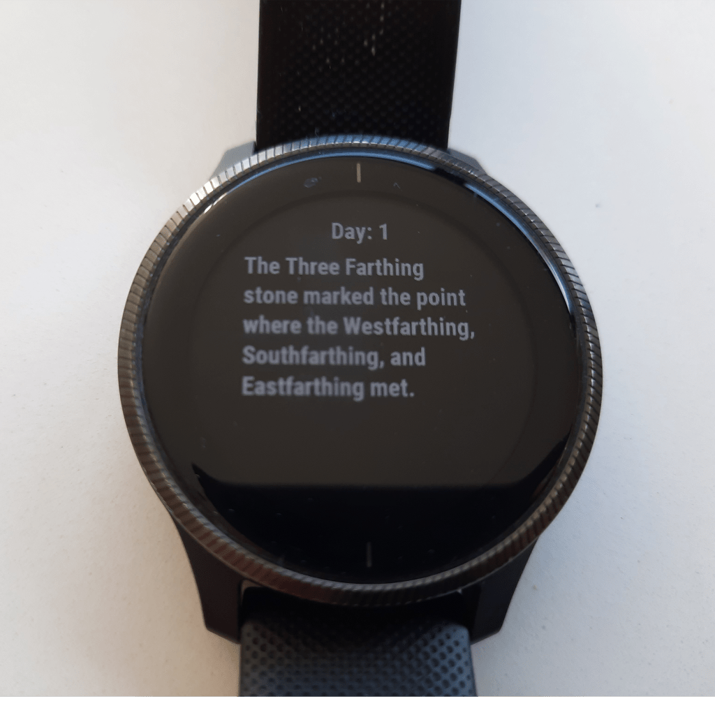 But then I found Walk with Frodo. This is a free widget for Garmin smartwatches. And it does exactly what I expect: It counts your steps towards Mordor, and you get information about what you encounter along the way.
