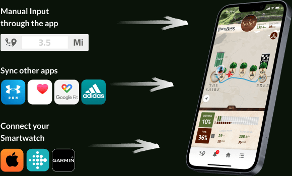 I also found The Lord of the Rings virtual challenge by The Conqueror. This tracks your walking progress as you advance towards Mount Doom. Along the way, you get story extracts and actual postcards to motivate you to complete your quest.