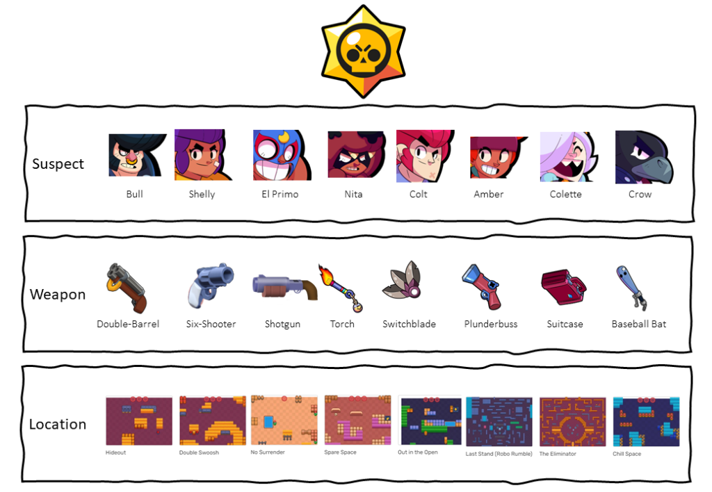 My son & his friends are big Brawl Star fans, so they have to find suspects, weapons & locations hidden all over his room.