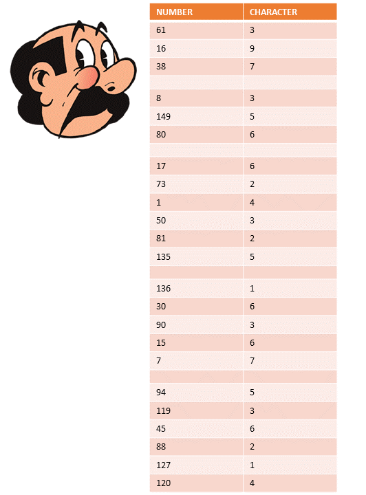 Each rubber band has a number and a character. If you put the numbers in order, you get the final digit of the treasure lock.