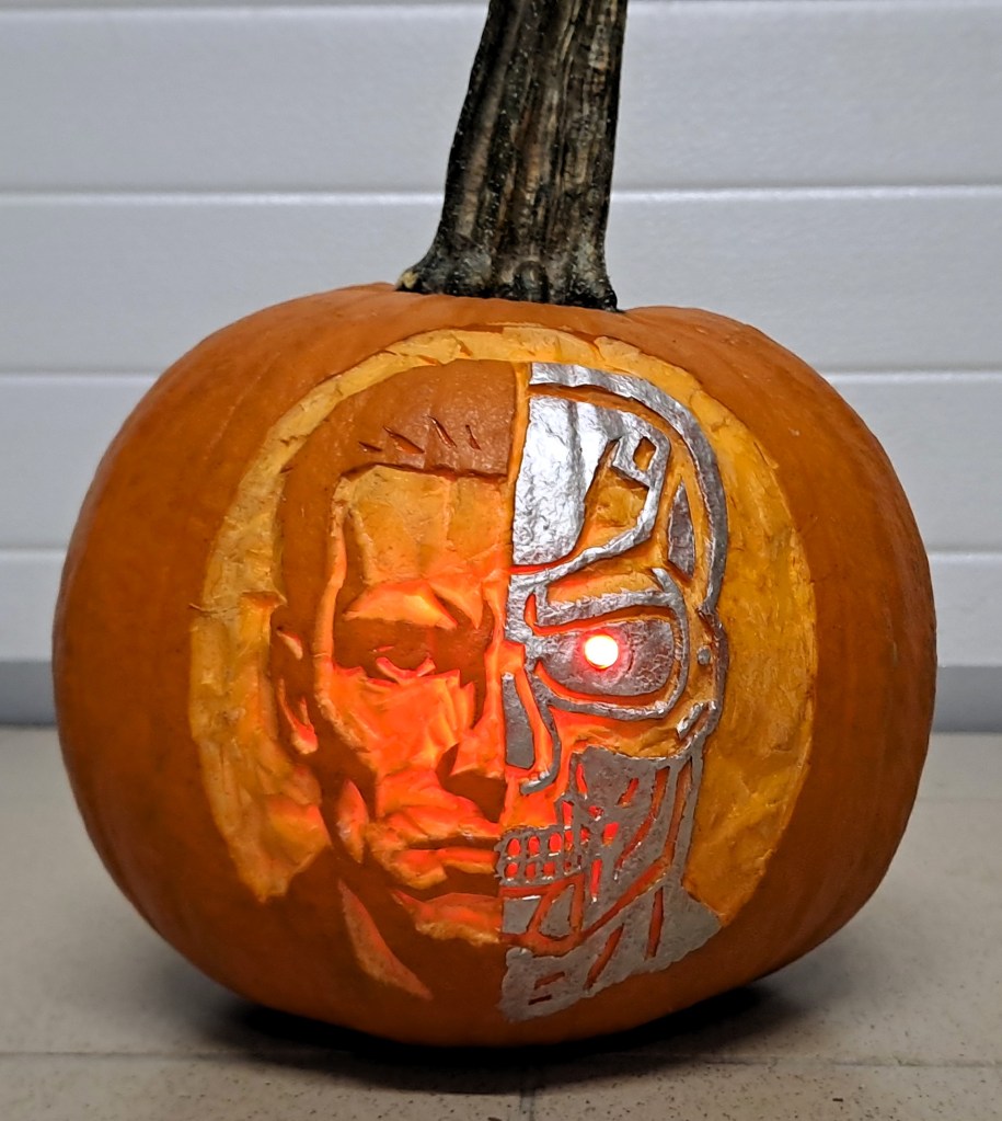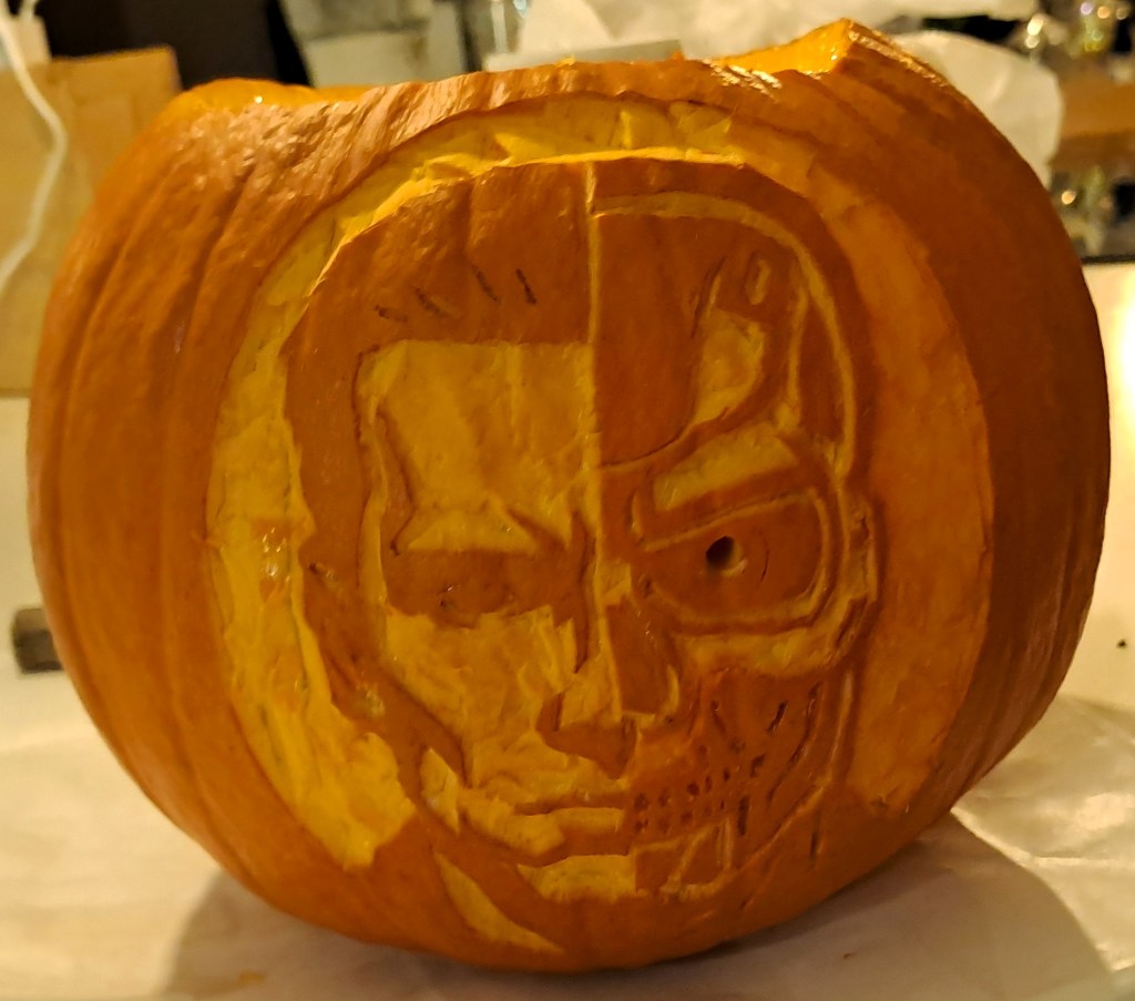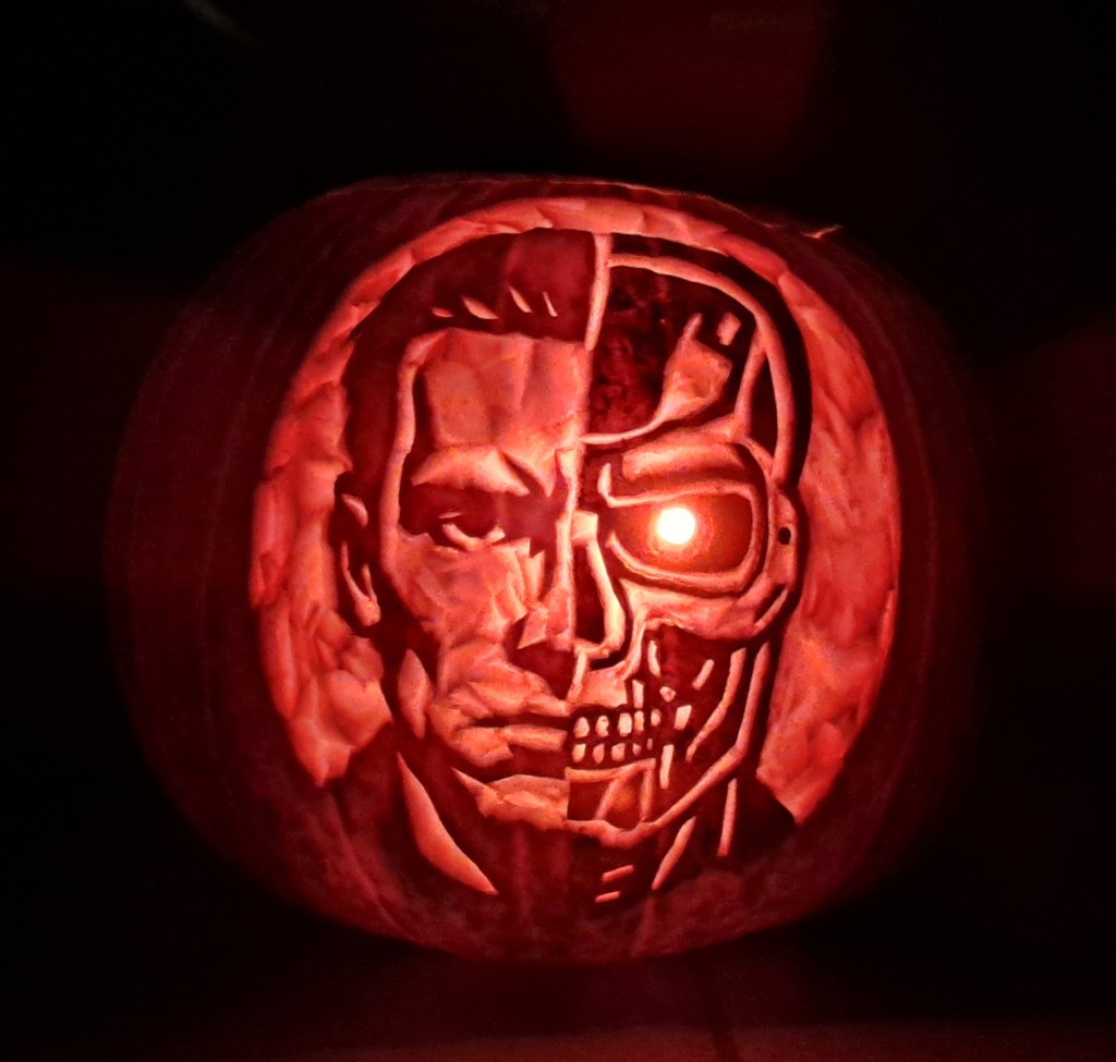 This year I wanted to carve a pumpkin inspired by the Terminator movies. Unfortunately, I couldn’t find a stencil that really matched with what I had in mind.