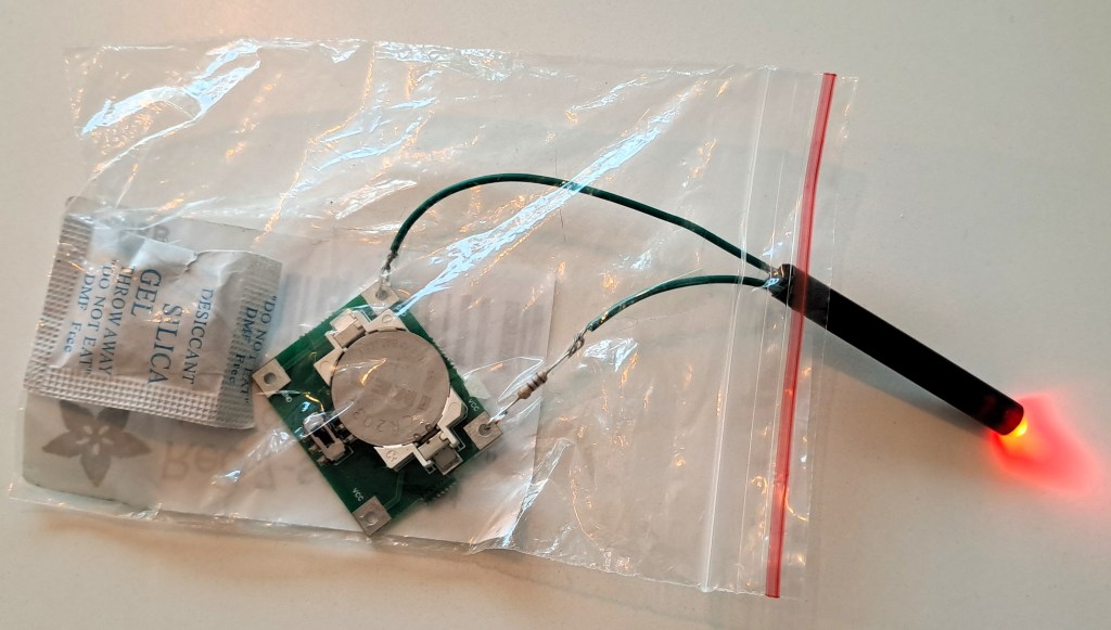 To protect the electronics from pumpkin moisture, I sealed everything in a small Ziploc bag with some silica gel.